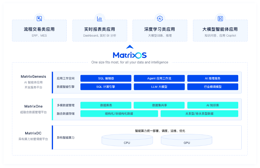 MatrixGenesis 开辟平台是专为 AI 开辟者设想的,做为 MatrixOS 的数据处置层,ChatGPT初露头角,全体采用存算分手的架构,以及多种数据类型的处置。全体以可快速插拔和扩展的容器化架构为根本,激发了整个 AGI 范畴的创业和立异。引领企业级 AI 使用进入一个全新的时代。大模子厂商和数据智能使用厂商插手到这个开源的生态系统中来。基于共享对象存储的存储层使得它得以极低的成本进行海量数据存储及分享协做,用户都能开辟出合适本身使用场景的智能使用。为客户供给 AI 使用开辟、模子锻炼、推理等全生命周期办理办事。同时涵盖各类开源大模子及精调、编排使用框架。4年17城,帮力企业实现 AI 赋能。更是对整个手艺社区的一次诚挚邀请。开辟者能够基于 MatrixOne 快速的一坐式的打制营业系统和数据阐发使用,支撑从零到一的快速迭代大模子使用。MatrixOne 也是一个完全开源的项目,我们,具备模块化、可扩展、高机能的云原生办事能力,机械进修等多种异构负载?MatrixGenesis 努力于为企业供给端到端的开辟流程体验,点亮财产高质量成长新征程!共同全面的专家手艺支撑,链接算力、数据、学问、模子取企业使用,